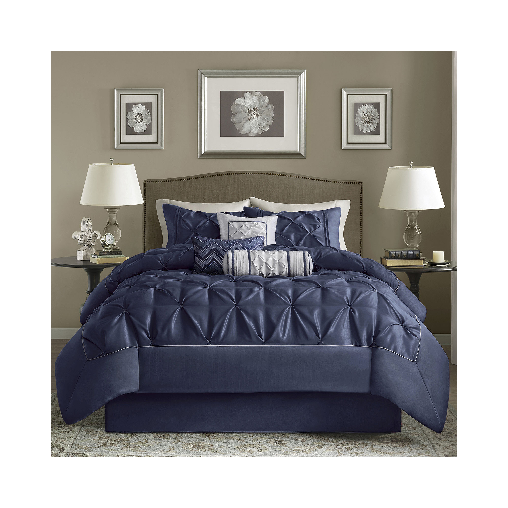 Make a sophisticated statement in your bedroom with this comforter set featuring gorgeous tufted details in rich navy blue